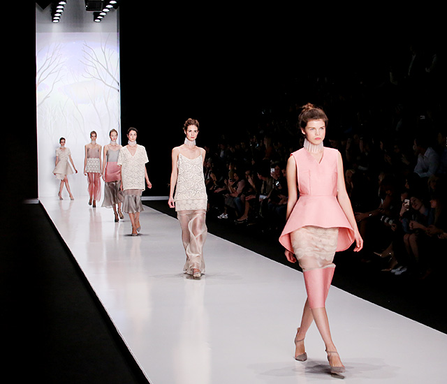 Весенне-летняя коллекция сестер Юлии и Алисы Рубан получилась по-девичьи нежной. Модели вышагивали в многослойных платьях, ажурных брюках и легких юбках.