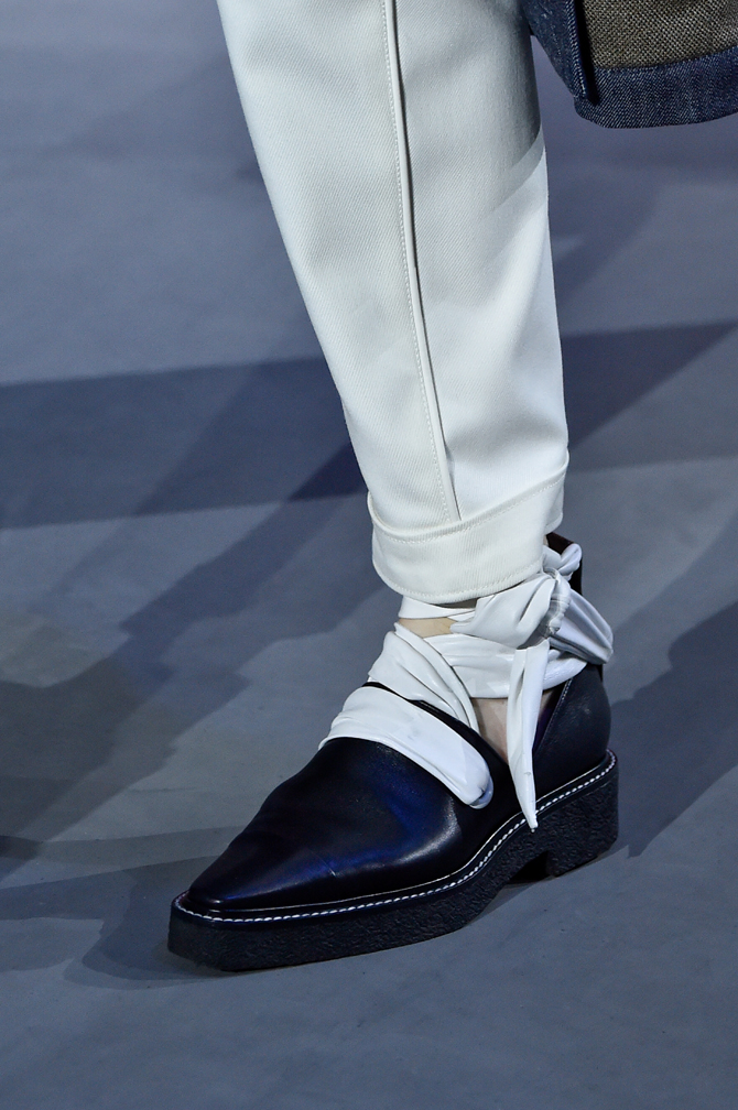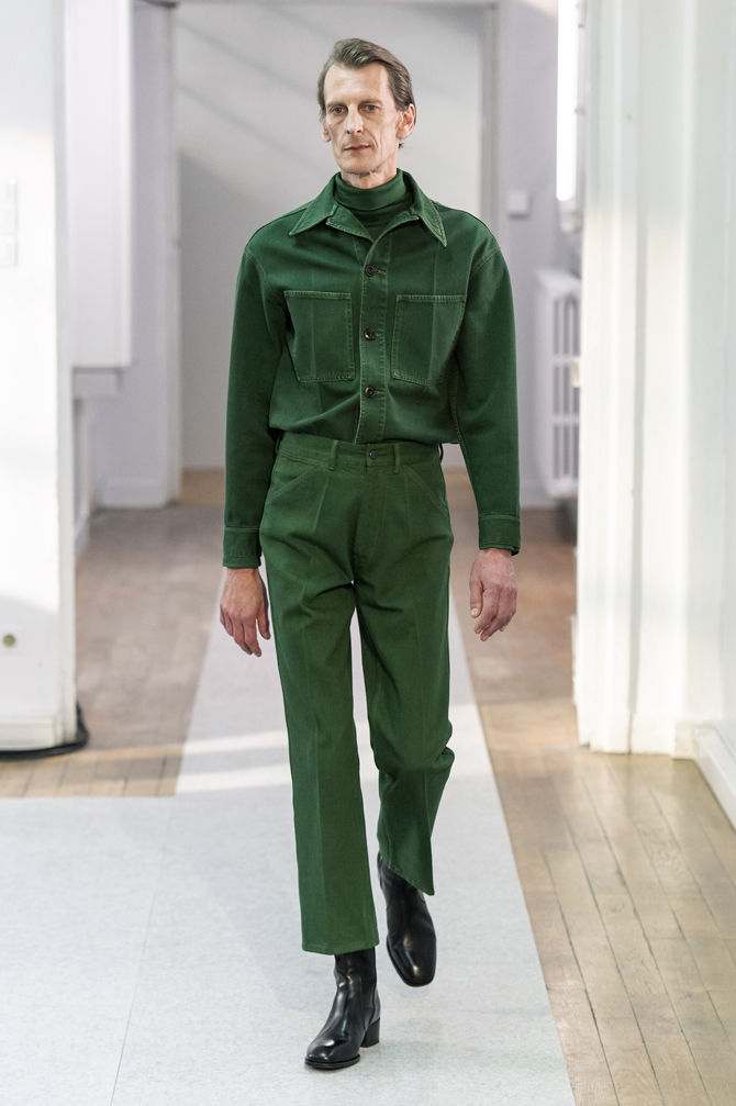 Сапоги и ботинки The Row. А на показе Lemaire сняла бы с мужчины-модели зеленый костюм из денима. Обязательно серый лук Maison Margiela с милыми туфлями и пальто Saint Laurent.