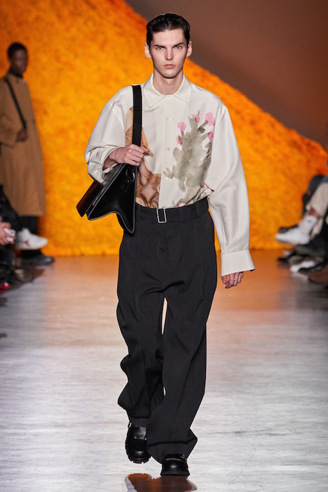 Еще одно символичное возвращение во Флоренцию. Именно в этом городе познакомились дизайнеры Jil Sander. Люси и Люк Мейер учились в Polimoda, где он изучал тейлоринг, а она — маркетинг: по счастливой случайности, студенты снимали комнаты в одной квартире. На шоу, которое проходило в трапезной собора Санта-Мария-Новелла, считывались и другие символы. Например, горы календулы отсылают к старейшей аптеке при соборе, где 400 лет, еще до зарождения бьюти-индустрии, монахи готовили лечебные бальзамы и духи. Кисточки на пальто и жакетах напоминают об облачениях священников. При этом говорить о ярко выраженных церковных мотивах в коллекции не стоит — у Люси и Люка просто получается подчеркнуто спокойная одежда. Ничего кричащего, никакой провокации. Красивые, хорошо сидящие вещи, которые должны быть приятны не только взгляду со стороны, но и самим владельцам. Особое удовольствие от вещей Jil Sander заключено в деталях — серебряной фурнитуре на воротниках, плетеных шнурах на сумках и едва заметных акварельных разводах на шелковых рубашках.