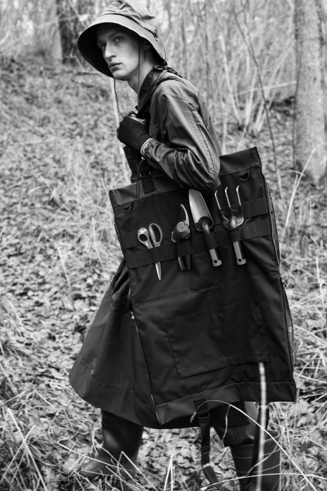До участия в Pitti Uomo финская марка не имела вообще ничего общего с модой. Fiskars — старейший производитель садовых инструментов с 400-летней историей. В магазины бренда идут за ножницами, секаторами, пилами, граблями и лопатами — их можно узнать издалека по оранжевым ручкам. Производством одежды Fiskars занялась впервые. Для этого марка объединилась с финским дизайнером Марией Коркейла, выпускницей университета Аалто в Хельсинки. Под ее руководством одежда для работы в саду стала модной и не в ущерб утилитарности: у курток отстегиваются рукава и подол, брюки снабжены множеством бронекарманов для инструментов, а фартукам, комбинезонам и панамам теперь не страшен ливень. Есть еще поясные сумки для инструментов, которые выглядят так круто, что их захочется купить, даже если у вас нет сада. Все сшито только из органических, переработанных материалов и веганской кожи — финны вообще помешаны на экологичности. Первая линейка одежды Fiskars появится в магазинах в августе.