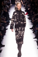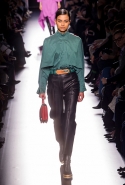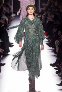 Основные элементы: яркие летящие платья и свободные блузки с принтами и бантами в духе 70-х, объемные дубленки, свитера и джемперы крупной вязки, объемные пальто, свободные брюки прямого кроя