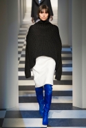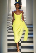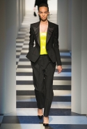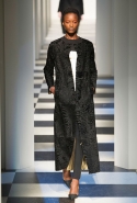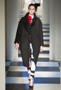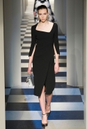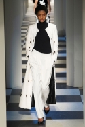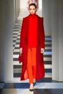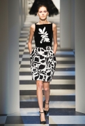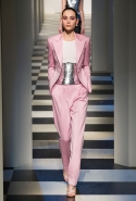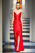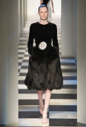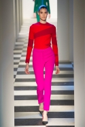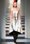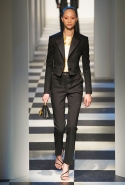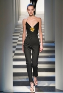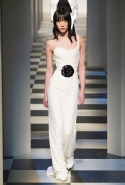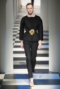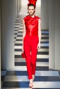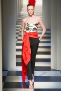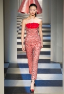 Коллекция во многом оказалось непривычной для канонической эстетики бренда и получилась слегка разрозненной: металлические розы на сумках, ремнях и топах, красные мелкие розочки на жакетах, платьях и брюках, вечерние платья со сложными вышивками, сочетания атласных топов с хлопковыми брюками.