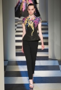 Основные элементы: вечерние платья с вышивкой, металлизированные ткани, узкие брюки, мех, атлас, бархат