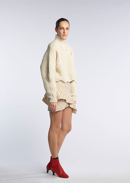 Коллекции Изабель Маран — это всегда комфортные повседневные вещи и остроумный стайлинг. В Pre-Fall 2017 дизайнер предлагает много объемных свитеров, брюк расслабленного кроя, платьев с цветочным принтом и жакетов, но все эти привычные вещи смотрятся по-новому благодаря смелым сочетаниям. Француженка компонует платья с леггинсами из прозрачной ткани, брюки — со стегаными пальто-халатами в восточном стиле, а строгие жакеты — с лосинами из лайкры в духе 80-х.