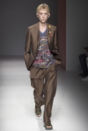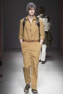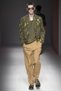 Дизайнеры марки, как в свое время и отец «новой волны» Жан-Люк Годар, называвший де Сталя своим любимым художником, не смогли остаться равнодушными к той свободе и смелости, с которой он работал с цветом. Герой феррагамовской коллекции охвачен охотой к перемене мест и стремится в дорогу дальнюю. Его наряд элегантен, но при этом достаточно функционален: в милитари-деталях курток-сафари и объемных брюк просматриваются отсылки к военной форме, которую де Сталь успел поносить во время службы во Французском иностранном легионе. Броские пластиковые броши, дизайн которых навеян графикой его работ, украшают воротники и клапаны нагрудных карманов как нашивки и знаки отличия — то ли за отличное выполнение боевых заданий, то ли за отменное чувство цвета.