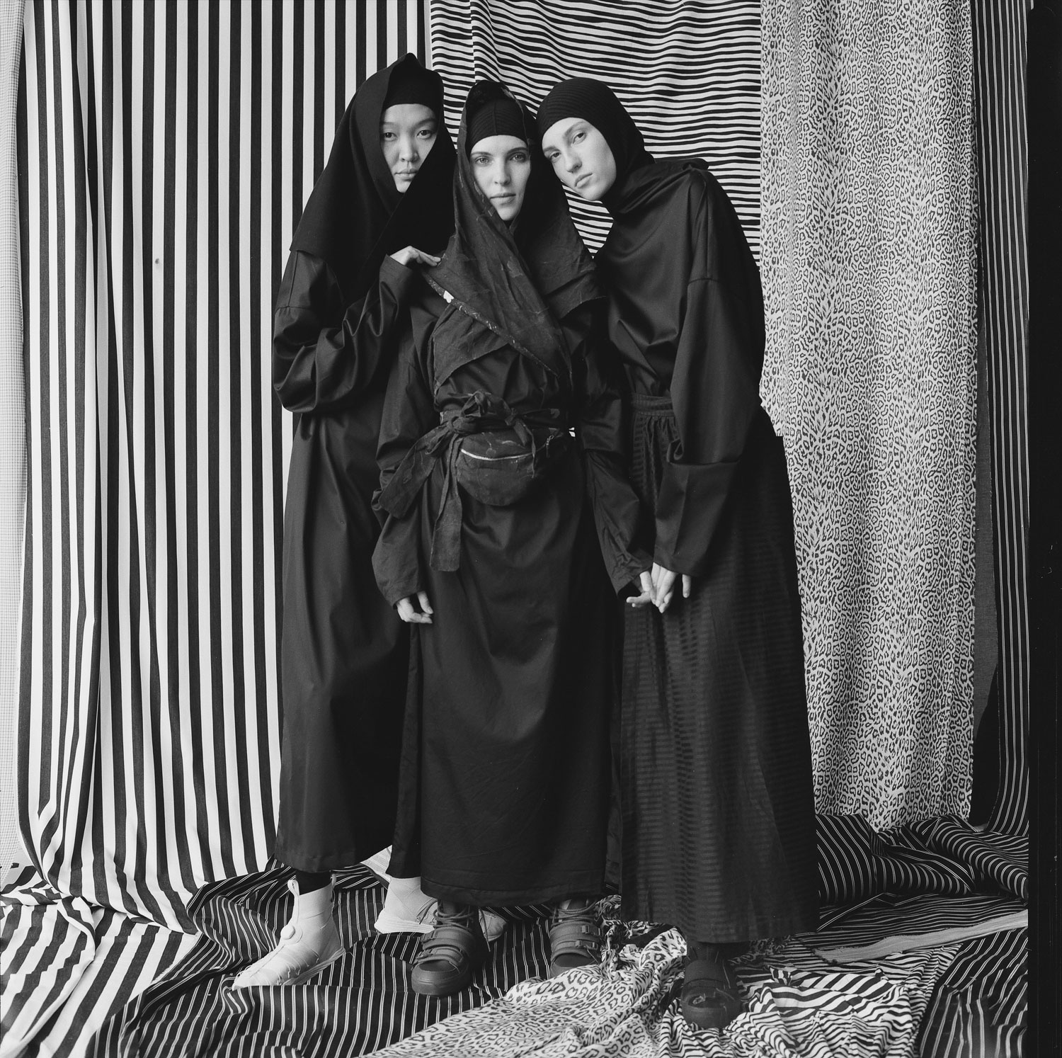 Мы впервые работаем вместе, поэтому наша первая коллекция — это робкое прощупывание почвы для дальнейшего пути. Мы уехали от шумного города к морю. У нас было желание создавать одежду по шариату. Начиналось все с того, что мы обдумывали общую концепцию, силуэты и формы, было отрисовано огромное количество эскизов, пересмотрено много фотографий костюмов разных народов. Эта коллекция капсульная и силуэтами напоминает примитивизм в самом хорошем смысле этого слова. Это наша попытка создать базовый гардероб с традиционными элементами, переложенными на новый лад.