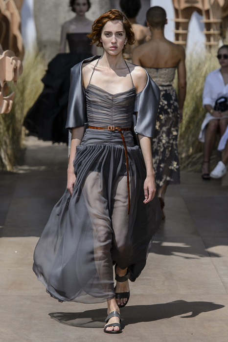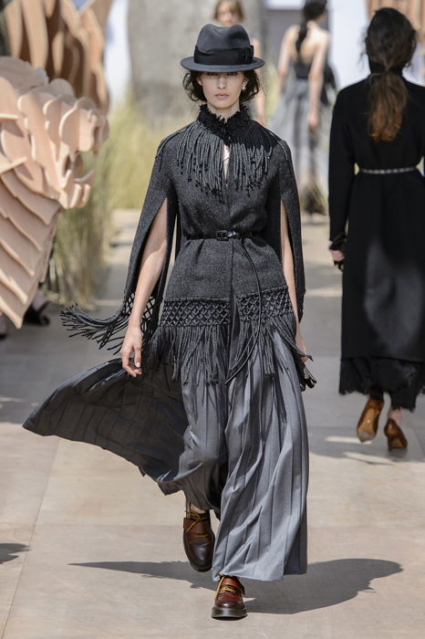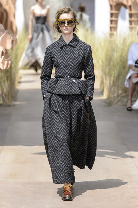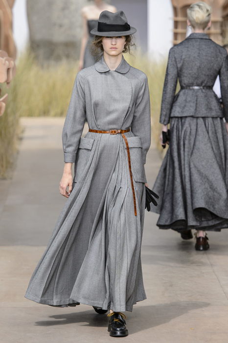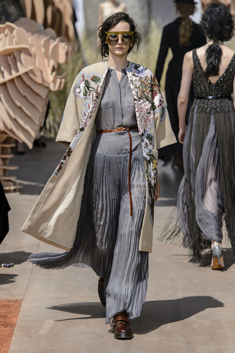 Помимо знаковых для Марии Грации Кьюри невесомых платьев из прозрачного тюля в коллекции появились вещи из плотной костюмной ткани и отсылки к мужскому тейлорингу, который в рамках коллекции приобрел статус феминистского заявления. Из кутюрной коллекции будущей осени можно собрать гардероб для женщины, которая исследует новые страны и континенты: здесь есть и функциональные пальто, и дубленка-комбинезон, одинаково уместная как на парижских улицах, так и где-нибудь в Альпах, и кимоно, отсылающие к токийским путешествиям Диора.