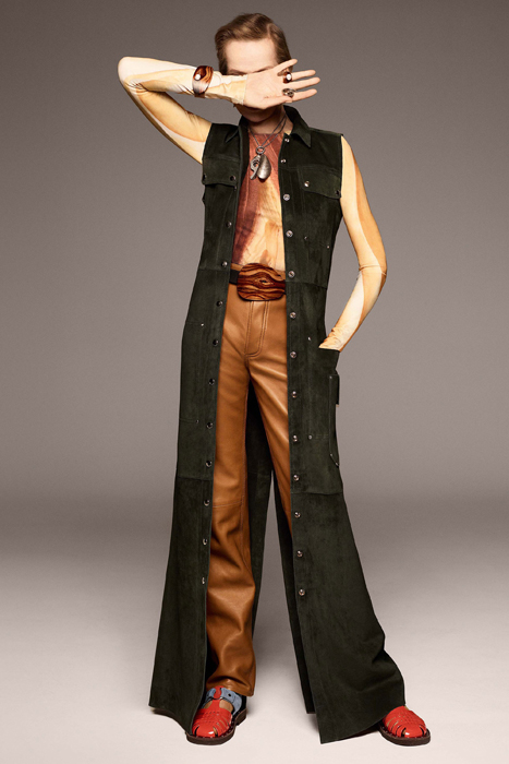 Для съемки своего резортного лукбука Acne Studios пошел по беспроигрышному пути. Новую коллекцию дизайнеры решили показать не на рядовых моделях, а на легенде моды Верушке фон Лендорф. Этим выбором бренд в очередной раз подчеркнул, что та линия в дизайне, по которой следует Acne Studios, подходит любой яркой личности — вне зависимости от пола и возраста. В коллекции можно найти чиносы с завышенной талией, бомберы, рубашки и пиджаки свободного кроя — базовые элементы категории унисекс, которые присутствуют почти в каждой коллекции бренда. Правда, в резорте все это было дополнено новыми элементами — отсылками к ручным кутюрным техникам, фолку и винтажным кожаным изделиям.