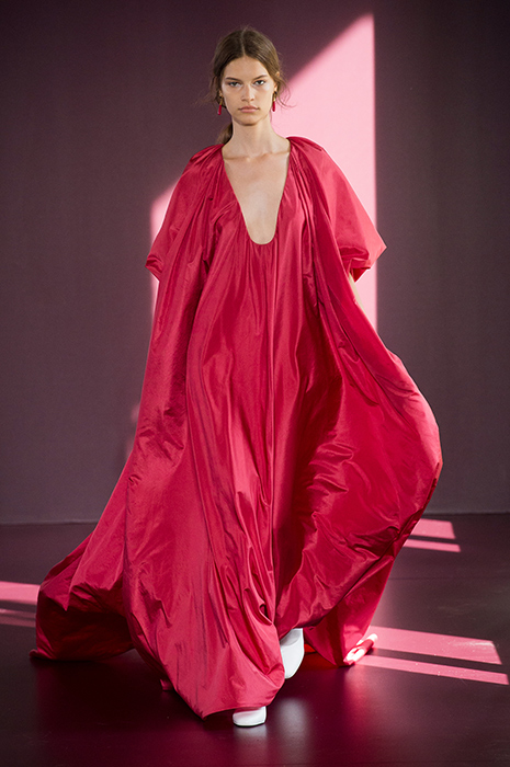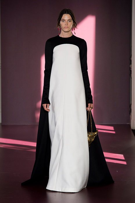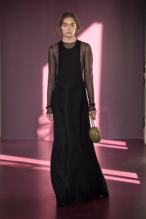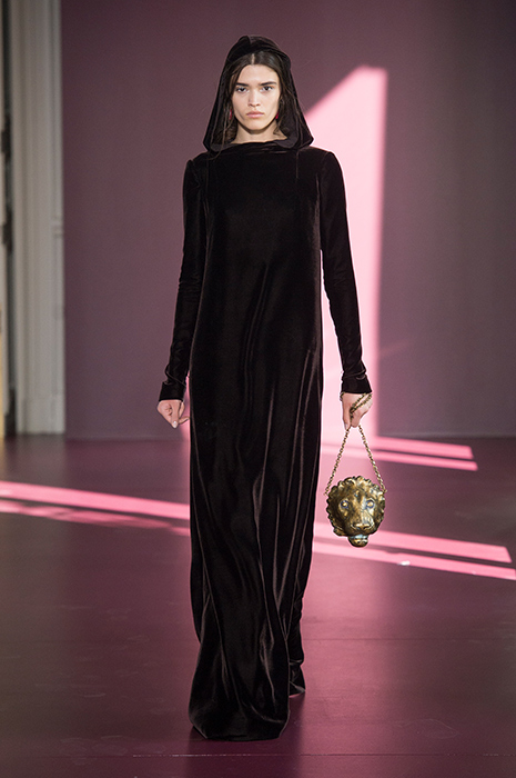 Valentino всегда так или иначе затрагивает в своих коллекциях тему католичества, что вполне естественно для модного дома, который базируется недалеко от Ватикана. Однако если раньше религиозная тема проходила тонкой линией, то в этом сезоне ее присутствие было более очевидным. По словам Пьерпаоло Пиччоли, в новой кутюрной коллекции он хотел провести параллель между святым и ритуальным и сплести их воедино с кутюрными техниками. За визуальностью дизайнер обратился к картинам испанского художника Франсиско де Сурбарана, который в своей живописи уделял особое внимание библейским сюжетам и образам. В коллекции появились монументальные монашеские платья с капюшонами, тяжелые накидки и сумки в виде голов зверей как символов семи смертных грехов. Если в последнюю резортную коллекцию Пиччоли внедрил элементы повседневной одежды в виде спортивных костюмов, то в кутюрной в череду шелковых и тюлевых платьев вписались брюки, водолазки и жилеты. Возможно, такое сочетание противоположностей можно воспринимать как еще один знак в пользу того, что даже крупные дома моды начинают создавать вещи, прислушиваясь к нуждам своих клиентов.