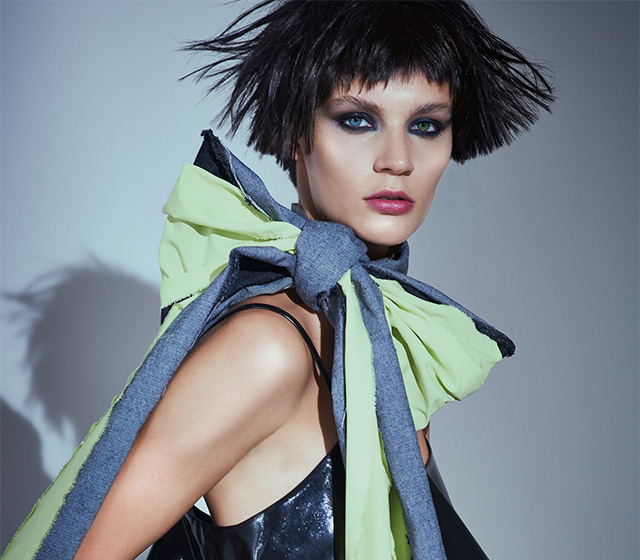 Провокационная сексуальность сочетается с гиковской любовью к фантастике и комиксам, главными героями которых в принтах на платьях и топах оказываются нарисованные кошечки, а геометричные формы перекликаются со смелыми вырезами, массивными молниями и прозрачными деталями. Основой гардероба этой девушки-кошки становятся вещи черного, серого и белого цветов, разбавленные кислотным желто-зеленым и леопардовыми принтами. А свободные, не сковывающие движений платья, комбинезоны, удобные дубленки и парки соседствуют в ее шкафу с кожаными юбками с вырезами до бедра и черными сетчатыми колготками. В коллаборации с итальянским брендом Braschi специально для осенне-зимней коллекции ARnouveau также была создана небольшая линейка аксессуаров: варежки и рюкзак из натурального меха.