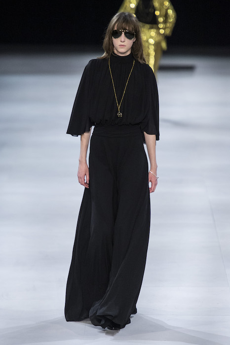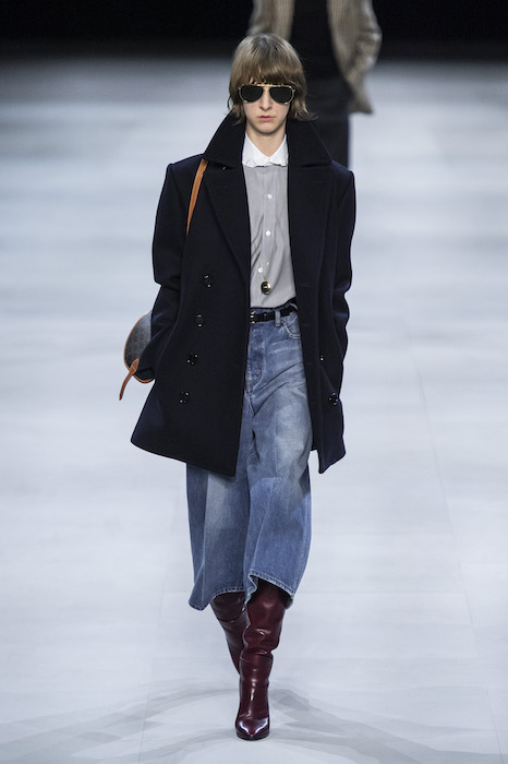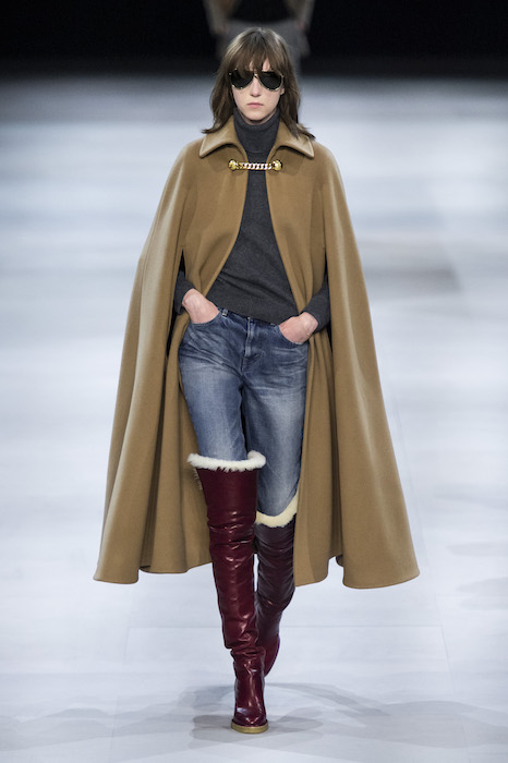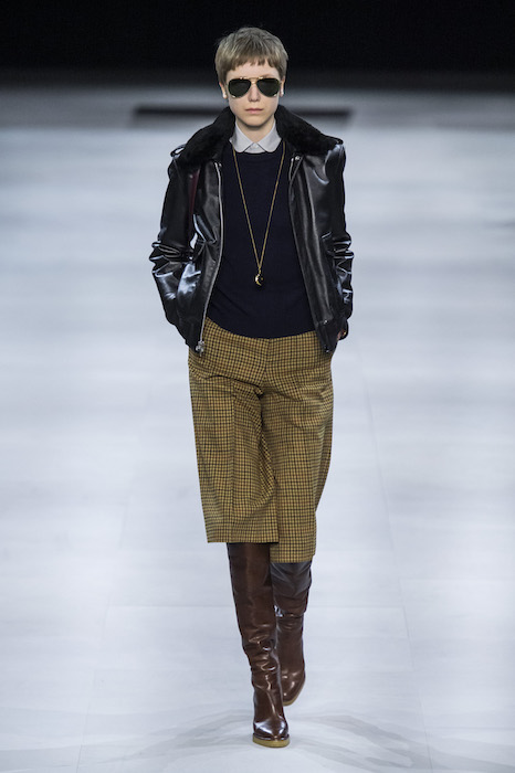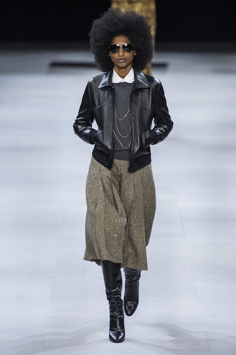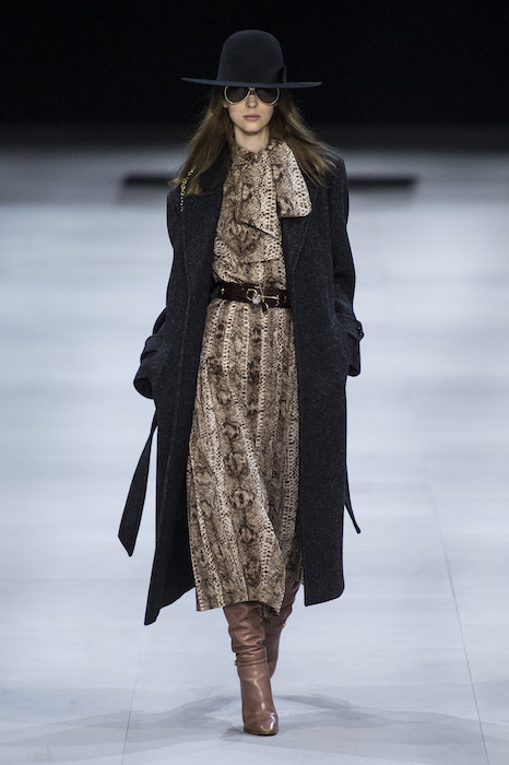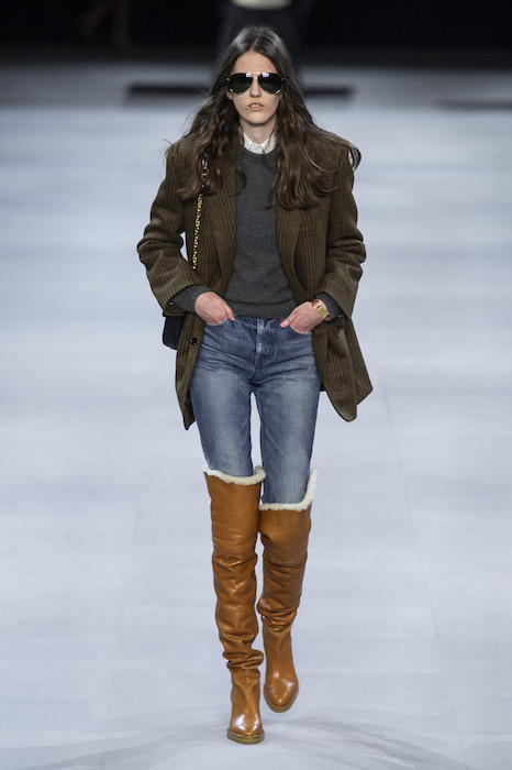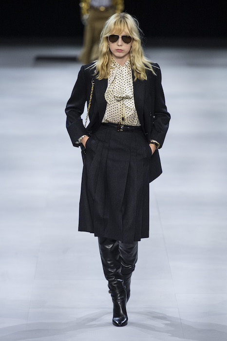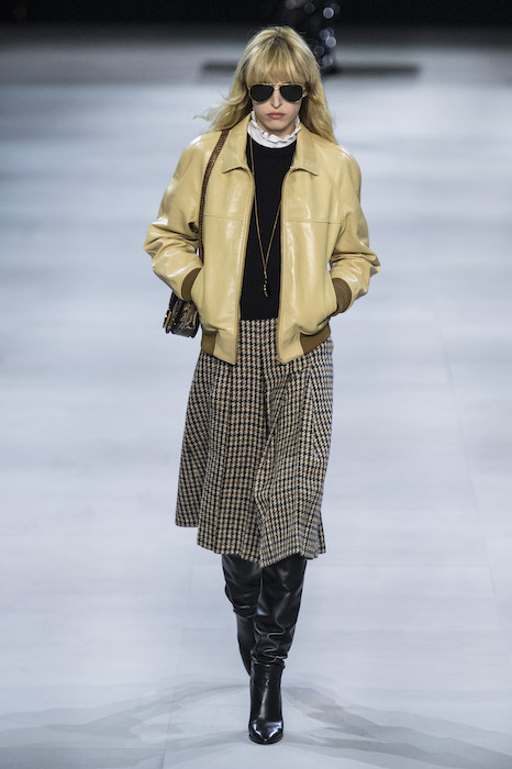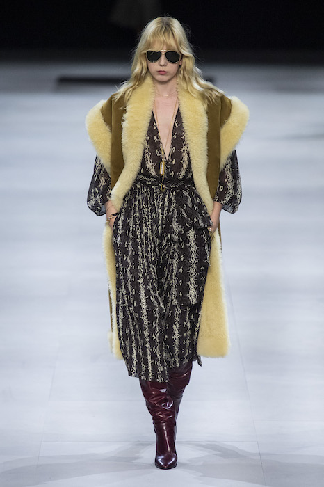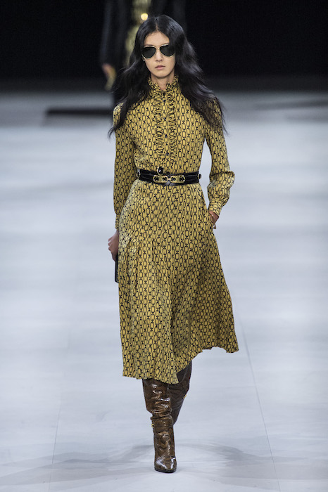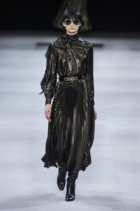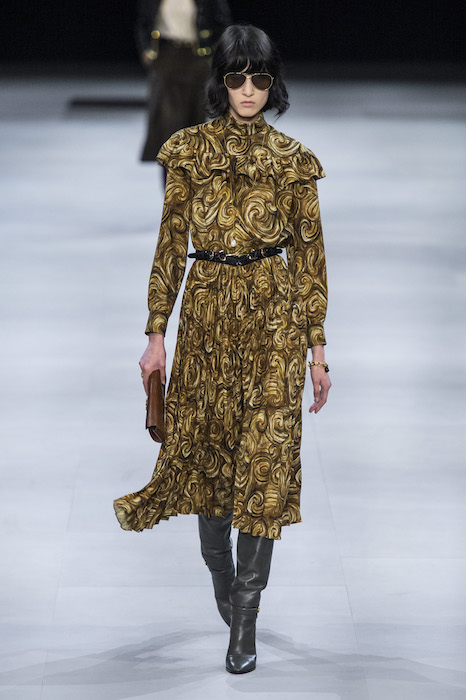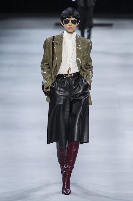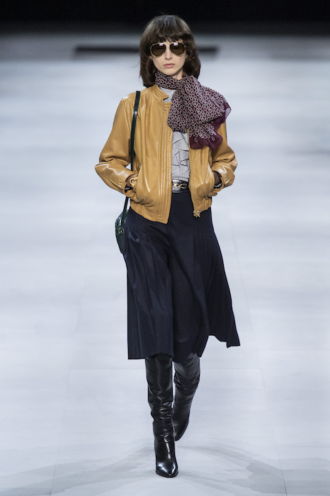 Эди Слиман не оправдал ожидания тех, кто снова планировал увидеть десятки переливающихся мини-платьев. Дизайнер вспомнил эстетику старого Celine до эпох Майкла Корса и Фиби Файло. В коллекции были плиссированные клетчатые миди-юбки, шёлковые блузки, пончо и шерстяные костюмы — как будто специально для тех, кто упрекал дизайнер в неуважении к традициям дома Celine.