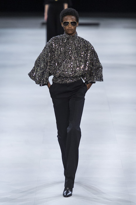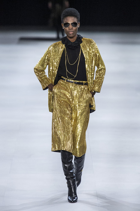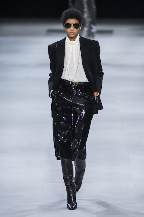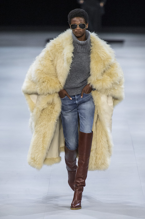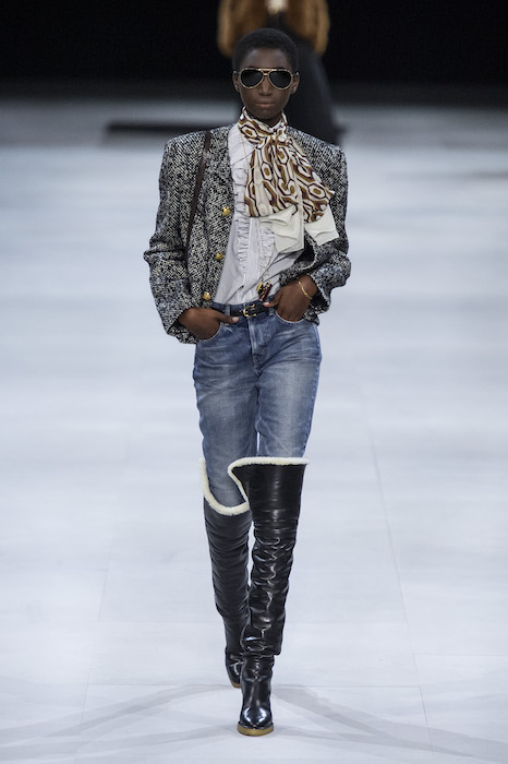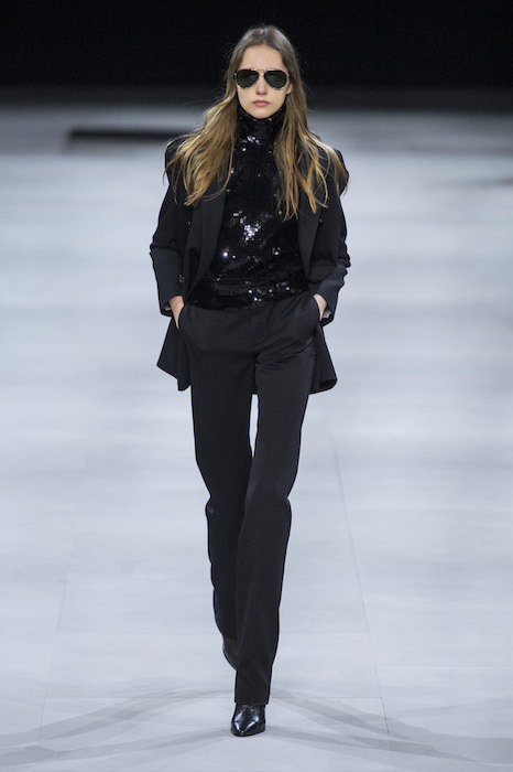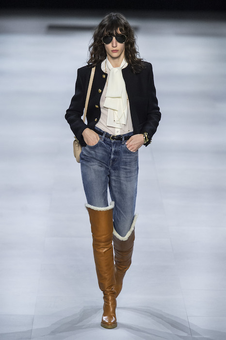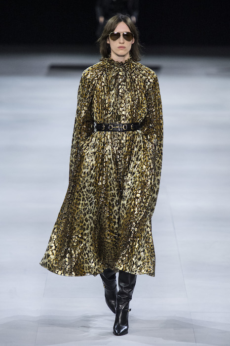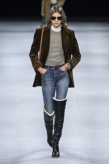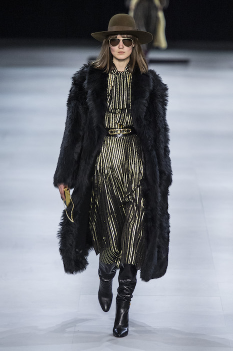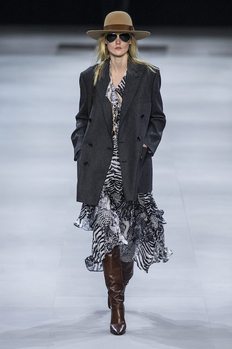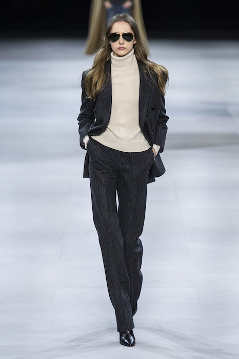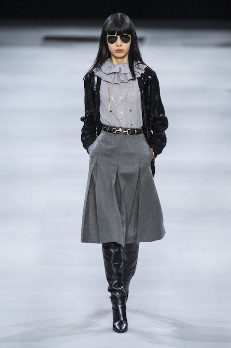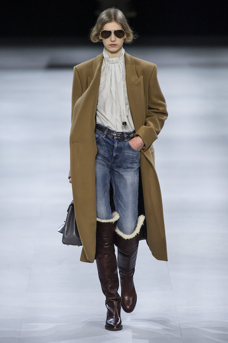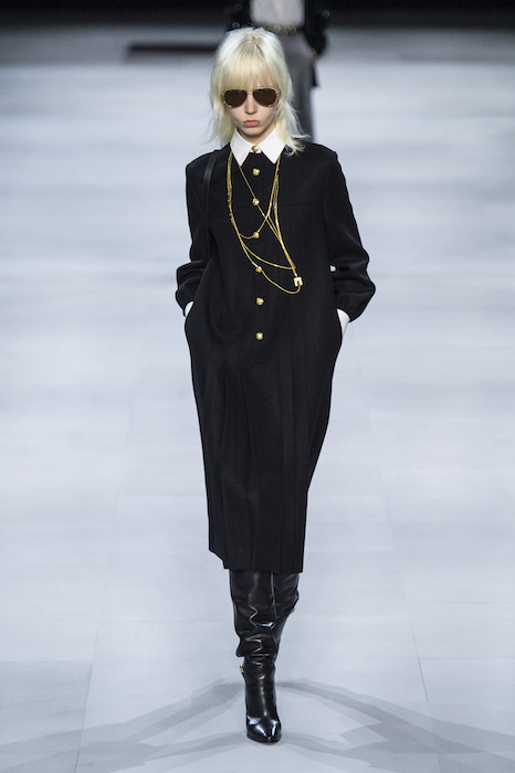 Эди Слиман не оправдал ожидания тех, кто снова планировал увидеть десятки переливающихся мини-платьев. Дизайнер вспомнил эстетику старого Celine до эпох Майкла Корса и Фиби Файло. В коллекции были плиссированные клетчатые миди-юбки, шёлковые блузки, пончо и шерстяные костюмы — как будто специально для тех, кто упрекал дизайнер в неуважении к традициям дома Celine.