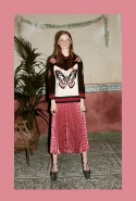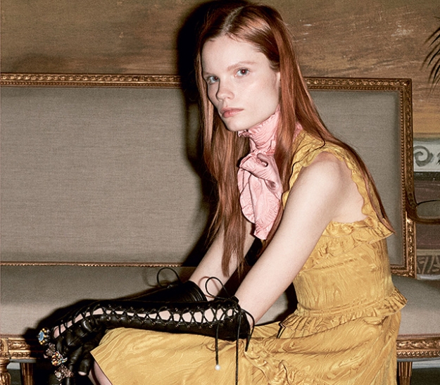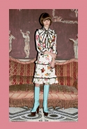 Если бы год назад нам показали коллекцию Gucci pre-fall 2016, мы бы не поверили, что это Gucci. А сегодня не только верим, что безумные и прекрасные цветовые сочетания, полоски, свитера «с сюжетами», очки ботаника и трогательные береты — это все Gucci, но еще и любим их, и ждем продолжения. Дизайнер и не в последнюю очередь стилист Алессандро Микеле изобретать велосипед специально для pre-fall не стал — длина миди, полюбившиеся всем актрисам, судя по отчетам с западных светских мероприятий, рюши и банты, графичная окантовка платьев по-прежнему с нами. В текущей же коллекции к ним присоединились загадочные пейзажи на свитерах в духе картин Анри Руссо, цветные шубы с сердечками, звездами и луной (привет, Prada), шелковый бомбер, всевозможные находки из области ботаники и не только из нее — смотрим.