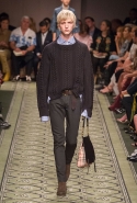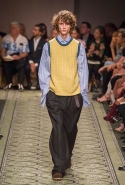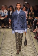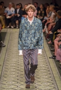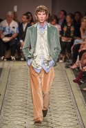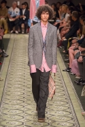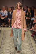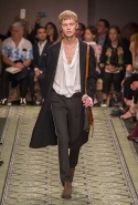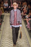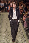 Литературные аллюзии вылились в исторически насыщенную коллекцию, которая, как и книга, охватила несколько веков костюма. Мы увидели Средневековье (ставшее очевидным трендом нового сезона) в виде воротников-стоек и мужских бантов, камзолы, пижамные костюмы, богато украшенные мундиры и, конечно, фирменные пальто-тренчи.