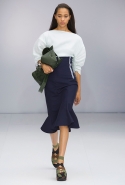Фульвио Ригони решился на эксперимент, добавив к привычному женственному (и, возможно, местами консервативному) образу марки спортивного шика. В коллекции появились дутые рукава, юбки годе с завышенной линией талии, брюки свободного кроя и жакеты с акцентом на поясе.
