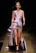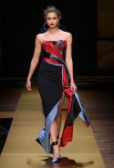 Создавая осенне-зимнюю коллекцию для Atelier Versace, дизайнер экспериментировала с «инженерным кроем» — так она назвала технику, которая придала движение скульптурным формам нарядов. Драпировка, плиссировка, склады и оборки обеспечивали драматичные спецэффекты, которые усугубляла разница в цвете между лицевой и изнаночной стороной вещей.