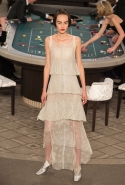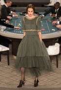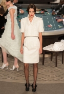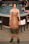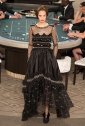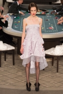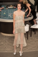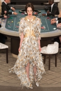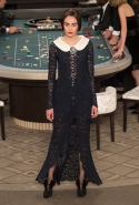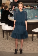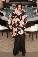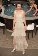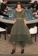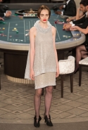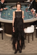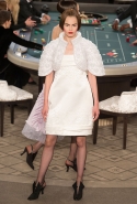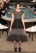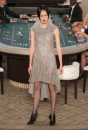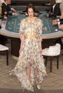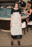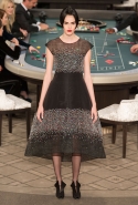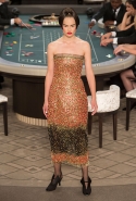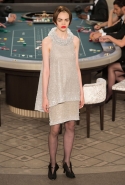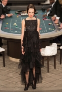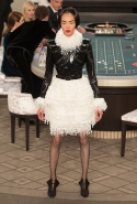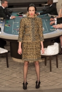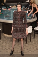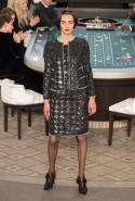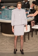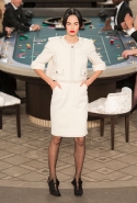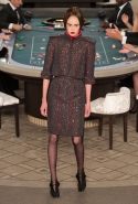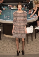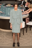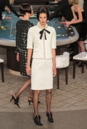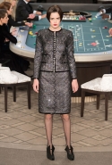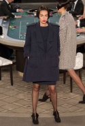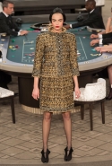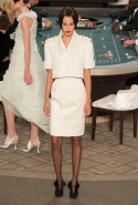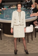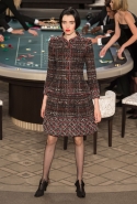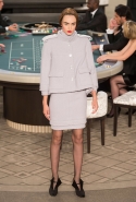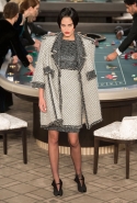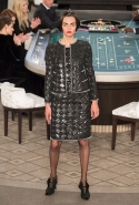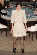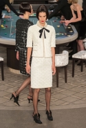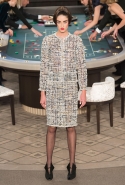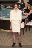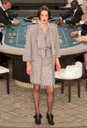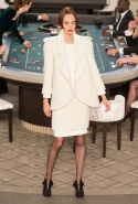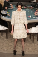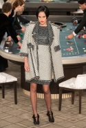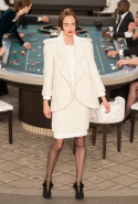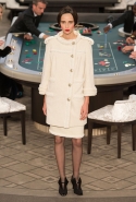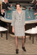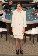 Возможность оказаться за игорным столом с Джулианной Мур, Ванессой Паради, Кристен Стюарт и целой командой топ-моделей выпадает, наверное, раз в жизни. И совершенно неважно, что игра при этом идет не на реальные деньги. Несмотря на обилие знаменитостей и внушительность декораций, Карлу Лагерфельду, однако, вновь чудом удалось сделать так, чтобы сама коллекция — на этот раз не скандальная, не яркая и визуально предельно спокойная — не терялась на фоне возведенной для показа площадки. И для этого даже не потребовалось вновь устраивать фейковый марш с громкими лозунгами глянцевого псевдофеминизма: дизайнер решил играть честно, сделав ставку не на политтехнологии, а на последние разработки ученых. Объектом эксперимента при этом стал самый неожиданный предмет, классический костюм-двойка Chanel из жакета и средней длины юбки. За годы правления Карла Лагерфельда мы уже видели, наверное, несколько сотен версий знаменитого твидового жакета — по степени известности этот предмет одежды лишь немного проигрывает маленькому черному платью и Chanel 2.55. Он успел стать и главным героем особой выставки, и героем книги, но самая необычная глава в его истории началась, можно не сомневаться, именно сегодня.