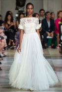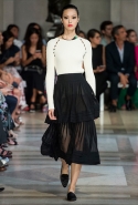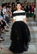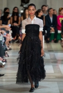 Коллекция почти целиком выполнена в черно-белом монохроме с редкими вкраплениями голубого денима, серебряной узорчатой тафты и шелка с классическими цветочными узорами. В целом, все очень гармонично и пристойно, только — простите за дерзость — возможно, скучновато? Похоже, что классическому дому моды не помешает радикальный апгрейд. Кто осмелится посягнуть?