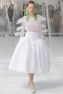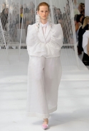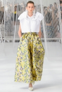 Во все аксессуарные обзоры недели наверняка попадут огромные серьги с цветочными гирляндами (прямой конкурент серьгам Proenza Schouler!) и балетки-эспадрильи с цветочной вышивкой и шнуровкой. Показ советуем смотреть дважды: образы целиком и крупные планы. Поверьте, деми-кутюрный декор того стоит.