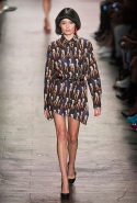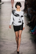 На сей раз бал правил new wave — модели Молли Бэйр, Сара Сампайо, Хэйли Болдуин, Дафна Гроенвельд и Лаис Рибейро щеголяли в стрижках каре в стиле 80-х, майках с лицами Джордан и Сью Кэтвуман (панк-моделей с показов Вивьен Вествуд конца 70-х годов), платьях со смелыми ретропринтами (шашечки и разноцветные треугольники) и надписями кислотного цвета — как будто из мультиков про черепашек-ниндзя.