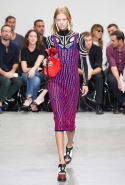 Proenza Sсhouler cовсем недавно подписали партнерский договор с косметической компанией MAC, и их новая коллекция как будто создана для смелых стрелок и смоки-айс — безупречные геометрические линии, горизонтальные полосы, широкие плечи, яркие принты и классические силуэты.