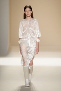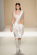 Также связующим мотивом коллекции стали скульптурные бюстье — развитие темы корсетов из прошлых сезонов. Другие находки — плиссированная кожа и шелк — добавили романтики.