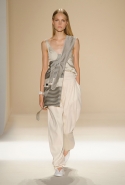 Сама Виктория вышла на поклон в конце показа в широких льняных брюках и светлой рубашке, подпоясанной простой хлопковой лентой, и в сандалиях на плоской подошве. Возможно, Posh Spice повзрослела, и корсетная броня и высокие каблуки остались в прошлом.