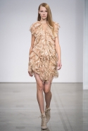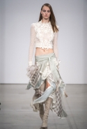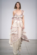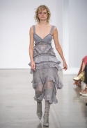 Сдержанные тона, блеклые цветочные принты и клетка, летящий шифон, топы с декором на одно плечо — словом, дизайнеры себе не изменяют. Однако при внимательном рассмотрении видно, что платья сшиты не из цельного материала, а из множества лоскутков; а ажурный декор манжетов и горловины предназначался скорее для однотонной блузы в викторианском стиле, чем для укороченного топа в клетку.
