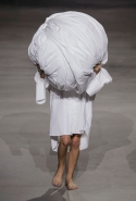 Симон Порт Жакмюс не относится к числу дизайнеров-стилистов: он именно дизайнер, что не мешает ему при этом быть и прекрасным рассказчиком. И каждое свое шоу Жакмюс использует не столько для демонстрации одежды, сколько для воссоздания через эту одежду настроения, очень убедительной и доходчивой трансляции собственных эмоций и состояния. Его яркая полосатая коллекция, ставшая абсолютным хитом модных съемок, очевидно, многое говорила и о его собственном на этот момент настроении. Но к новому сезону он, похоже, готовился не в лучшем расположении духа. Весенняя коллекция все так же необычна и хороша, в ней все так же появляются любимые молодым дизайнером яркие круги, но впечатление она производит мрачное.