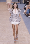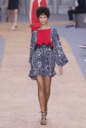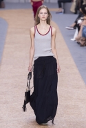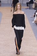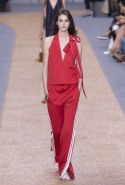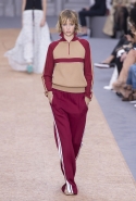 Коллекции Клэр Уэйт Келлер для Chloé всегда романтичны, воздушны и «девочковы», и так же хороши благодаря этому их рекламные кампании. Из сезона в сезон юные девочки на снимках и в видеороликах бегают по полям, теряются в лесах и отправляются в путешествия по разбитым дорогам. На этот раз повторить знакомую картинку может оказаться сложнее, потому что привычную романтичную сторону французской марки теперь оттеняет очевидное увлечение спортивным стилем. А девушка в красном костюме и брюках с белыми полосками по бокам, пусть даже бегущая по пшеничному полю, — это все-таки совсем другая история, не вписывающаяся в привычную эстетику в духе «Девственниц-самоубийц». Хотя костюм этот пришел на подиум из другого, тоже в некоторых кругах культового фильма — «Семейки Тененбаум» Уэса Андерсона, где в похожих ходили герой Бена Стиллера и отряд его экранных детей. Только у них, конечно, в паре с трениками шли олимпийки, а не топы с открытыми плечами и на завязках-бантах.
