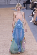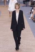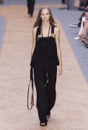 Отличной получилась и джинсовая часть коллекции. Здесь Клэр Уэйт Келлер обошлась без лишнего романтизма, сделав брюки с куртками, как полагается, объемными и мешковатыми. Один из выходов, похожий благодаря доведенным до крайности (по меркам французской марки) объему и мешковатости на наряд маляра, хорош особенно. И оба джинсовых платья, также вошедшие в эту часть, ему проигрывают без каких-либо шансов.