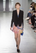 Даже берясь за одну и ту же тему, все дизайнеры раскрывают ее совершенно по-разному. В этом сезоне мы уже вспоминали слово «деконструкция», говоря о самых разных коллекциях, от Thom Browne и Craig Green с их новым взглядом на школьную форму и классическую белую рубашку до Proenza Schouler, рассказывающих об энтропии на примере традиционно испанских одежд. Теперь слово берет британец Кристофер Кейн. Его коллекция получилась самой яркой в прямом смысле этого слова, потому что дизайнер взялся за цвета буквально из всего радужного спектра. Топы и платья в его весенней коллекции раскрашены как стены в неблагополучных районах: здесь и пятна краски из баллончика, и цветные подтеки, и самые неожиданные переходы — от розового к желтому, от голубого к оранжевому и фиолетовому. А в паре с ними идут черные брючные костюмы, которые вполне могли бы стать офисной униформой, если бы не одно «но». Кейн, ничуть не жалея их, вырезает куски ткани из брюк и пиджаков, оставляя на локтях и коленях зияющие дыры, кромсая рукава и края брючин.