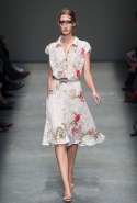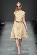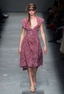 Что касается самой коллекции, она на этот раз получилась простой и составлена из непритязательных вещей. Платья в цветочек, брюки и пижамные жакеты в крупный горох, мужского кроя пиджаки, кожаные брюки, одна красная кожаная юбка, несколько симпатичных свитеров, что-то с леопардовым принтом — из такого набора можно собрать любой образ. Что, конечно, хорошо, хотя от массовой линии Topshop все это (за исключением нескольких последних платьев) почти не отличается.
