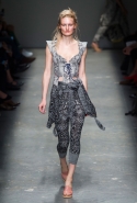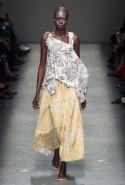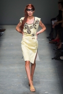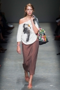 И снова повеяло секонд-хендом, и опять же это вовсе не недостаток, а очень удачный художественный ход. Значительная часть вещей из новой коллекции бунтарки Вивьен Вествуд выглядит так, словно найдена мятежным дизайнером на одежных развалах. Чуть выцветшие ткани, серия «мебельных» винтажных принтов, одежда с необработанными краями, словно растянутый и полинявший трикотаж — смешав все это с современными и яркими вещами, Вествуд собрала запоминающуюся и крайне удачную коллекцию.