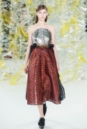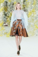 Фильмы начала двадцатого века были черно-белыми, поэтому в новой и, как всегда, красочной коллекции Delpozo трудно заподозрить отсылку к одному из них. Тем более к «Метрополису» — мрачной антиутопии 1927 года, рассказывающей о страшном городе будущего. Все эти темные эпитеты, правда, никак не могут подойти для описания получившейся коллекции: в ДНК Delpozo их нет и быть не может. Вероятно, их уравновешивают работы итальянской художницы Дарьи Петрилли, которые сам Фонт называет вторым своим источником вдохновения в этом сезоне, — хотя и ее рисунки кажутся как минимум тревожными. Так что спокойная жизнерадостность Delpozo на этот раз вырастает из самой неблагодатной (мы говорим только о настроении, нисколько не принижая художественной ценности ни картины Фрица Ланга, ни картин Петрилли) почвы. И отследить связь между источниками и итоговым результатом практически невозможно. Впрочем, у Фонта всегда получается именно так — он мастер подобных шифрованных посланий.