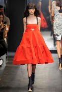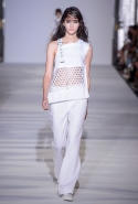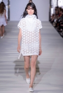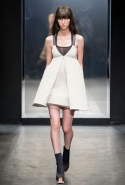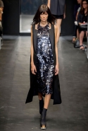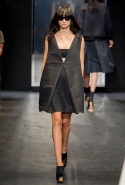 И снова школьницы — на этот раз в самой непривычной интерпретации. Если Том Браун и Шейн Оливер взялись перешить на свой лад традиционную школьную форму, то Вера Вонг просто решила соединить в одной коллекции самые разные вещи, которые ей нравятся, и главными ее темами оказались Лас-Вегас, школьницы и «Дневная красавица» с Катрин Денев — то есть тема двойственности и вообще двойной жизни, которую ведет один и тот же человек. Поэтому скромные закрытые платья соседствуют здесь с экстра-мини или прозрачной органзой, а школьные плиссировки — со спортивными бра. И, конечно, за Вегас отвечает череда блестящих платьев, расшитых золотистыми и серебристыми пайетками.