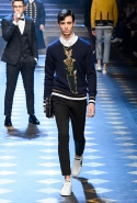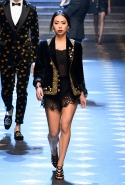 Показ прошел под девизом хэштегов #DGMillennials и #DGPrinces, и немудрено: получив известность на YouTube и в Instagram, миллениалы добрались до подиума Dolce & Gabbana. Среди них были дочери Сильвестра – Систин и София, Лаки Блю Смит и его сестры – Пайпер Америка, Старли Шайенн и Дейзи Клементайн (одни имена чего стоят), бойфренды и герлфренды актеров и актрис, немецкие фэшн-блогеры, ведущие инстраграмов с мемами и прочие люди, о которых вы никогда не слышали. Яркие принты, аристократичная фактурность и множество деталей — классическая стилистика итальянской марки.