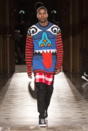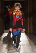 Основные элементы: «инфантильные» рубашки, майки, свитера и пуховики, «взрослые» пиджаки и строгие пальто, вечерние платья в женской части коллекции