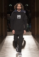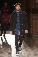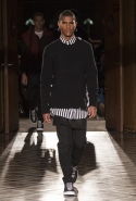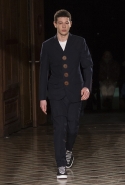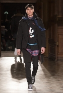 Стайлинговые приемы: большие деревянные пуговицы, подвернутые рукава у свитеров и рубашек, многослойность (футболка, рубашка, свитер и пальто в одном образе), платки вместо шнурков в капюшоне, белая футболка с классическим костюмом