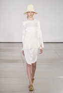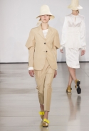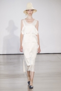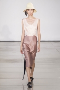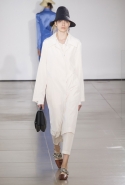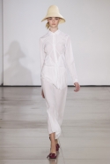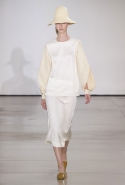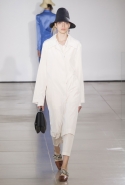 Родольфо Пальялунга продолжает придерживаться минималистского подхода к одежде, официально принятого в качестве главной идеологии дома Jil Sander еще его основательницей. На этот раз его минимализм особенно нежен: здесь нет ни одной резкой линии, а шелка, замша и ткани с легким металлическим мерцанием только ласкают взгляд.