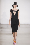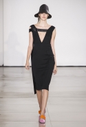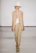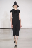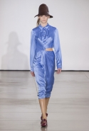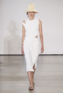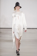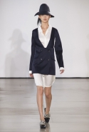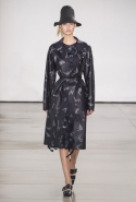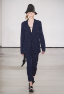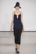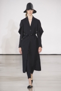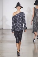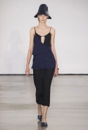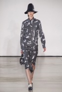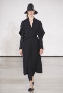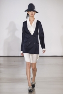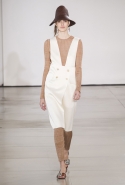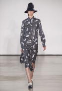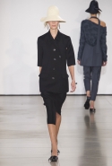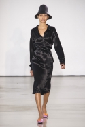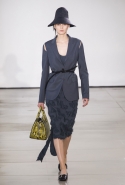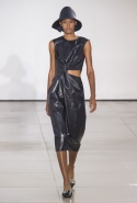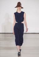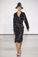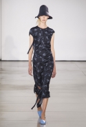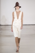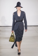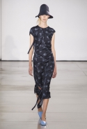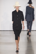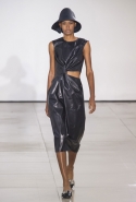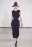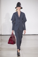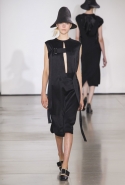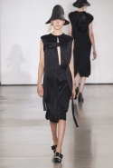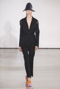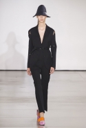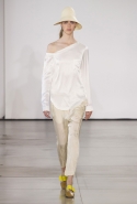 Со струящихся шелковых платьев, юбок и блуз в светлых тонах Пальялунга на этот раз начал показ и ими же, уже в исключительно черно-белой цветовой гамме, закончил. Самым ярким предметом в промежутке между ними в итоге стал канареечно-желтый кожаный плащ, а самыми важными предметами — брючные костюмы и костюмы с юбками, построенные на их же основе. Для того чтобы придать им нужную форму, дизайнер и его команда воспользовались не скрытыми швами и подкладками, а, наоборот, вынесли изнанку на публику: строился силуэт на неожиданных вырезах, вокруг которых ткань то сборилась, то приподнималась. Аккуратные вырезы в итоге появились на плечах пальто и платьев, на боках и на локтях. Еще одним интересным решением стали платья, напоминающие стандартные комбинации, но собранные из наслаивающихся друг на друга блоков ткани, закрепленных видимыми заклепками.
