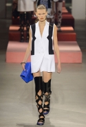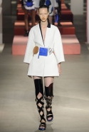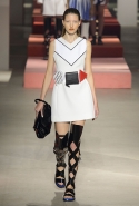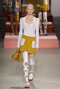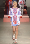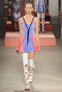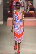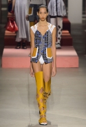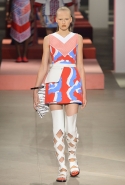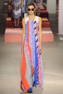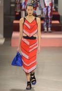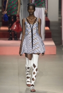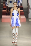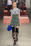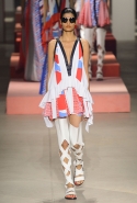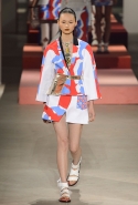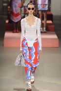 Вечные героини коллекций Kenzo при Леоне и Лим — девушки-путешественницы самых современных взглядов на жизнь. Дизайнеры не присоединяются к общей волне увлечения гендерной амбивалентностью, но активно используют в работе новейшие технологии и часто через свои вещи рассуждают о будущем. На этот раз обошлось без космических кораблей и говорящих андроидов, но получилось все равно интересно. Это, прямо скажем, довольно необычный взгляд на традиционно летнюю одежду: купальники и кружевные вязаные топы, мини-юбки и легкие платья, свободные брюки и яркие кюлоты. Главную роль в новой коллекции играют спортивные мотивы, новые интерпретации пляжной одежды и, конечно, яркие графичные принты — без них Kenzo при новых креативных директорах не представить никак.
