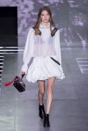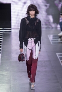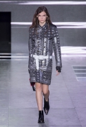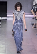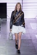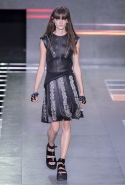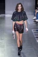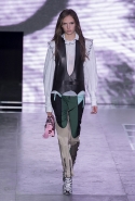 Николя Жескьер продолжает развивать тему футуризма, начатую чуть ранее с участием той же розововолосой модели. На этот раз Фернанда Ли вновь открывает показ Louis Vuitton, представляя коллекцию такую же футуристическую, но уже постапокалиптическую. И его героини, даже простые блондинки и брюнетки, а не обладательницы такого же запоминающегося цвета волос, как Ли, превращаются в героинь аниме. Некоторым достаются даже обручи на голову с сияющими во лбу камнями — неотъемлемая часть образа любой мультипликационной воительницы. Хотя сходства у этих украшений гораздо больше не с магическими артефактами, а с достижениями самых передовых технологий: и обручи, и чокеры выглядят как что-то среднее между шпионским приспособлением со встроенным детонатором и новинкой из магазина Apple, доступной в наши дни любому человеку с улицы.