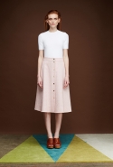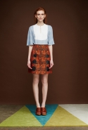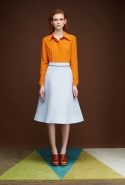 Оттеняют скромное обаяние весенних цветов яркие краски ранней осени: нежно-голубой и кобальтовый синий, пудрово-розовый, оранжевый (как описывает его сама дизайнер, цвет спелой тыквы) и бордовый. Лето подходит к концу, и в августе начинает чувствоваться, что осень уже поджидает где-то за углом, — это ощущение команде российской марки удалось передать с идеальной точностью.