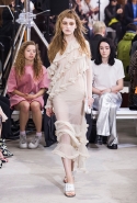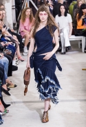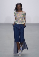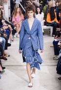 Когда пришла очередь денима, методы молодых дизайнеров изменились не слишком. Только к тем же кочанам из пышных (на этот раз джинсовых) оборок они подбирались чуть осторожнее, начав сперва с необработанных краев курток, постепенно перейдя к редким широким оборкам с такими же необработанными краями и только после этого показав самые взрывные образы. Именно так и выглядит новая романтика, создают которую дизайнеры поколения Marques'Almeida.