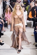 Они, подключившись к многочисленным сторонникам бельевого тренда, взяли полупрозрачные ночные рубашки и пижамы, тоненькие блузы и легковесные платья — и все это совершенно безжалостно покромсали, оставив на ткани рваные дыры. Уравновешивают эту нарочитую жестокость слои воздушных оборок, в бежевом цвете похожие на крем или кофейную пенку. Тот же трюк проделали Маркеш и Альмейда и с другими материалами: и с ярко-розовым шифоном, и с раскрашенным цветочками шелком, и даже с красной лакированной кожей.