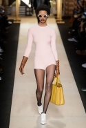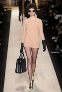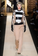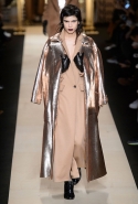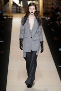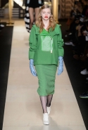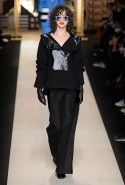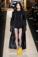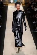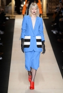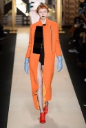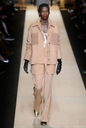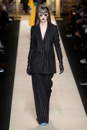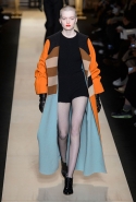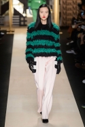 Линейка верхней одежды одним им не ограничивается. Потом появляются такие же, только более яркие, с геометричными узорами, полосками разной направленности, в пайетках, из цветного меха, из лакированных материалов. А все остальные вещи кажутся только дополнением к ним — главной продающей силе. Разве что просторные брючные костюмы могли бы конкурировать с верхней одеждой по убедительности — о силе новых power suits в новом сезоне мы уже говорили. Силуэты широкоплечих пиджаков нарочито прямолинейны, брюки просторны и широки, и все это, даже в нежно-розовом цвете, напоминает о брутальной архитектуре Берлина.
