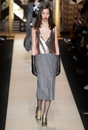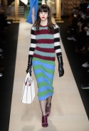 Эту коллекцию дизайнеры Max Mara посвятили Берлину начала прошлого века, всему прекрасному, что он подарил миру: от дада (хотя движение это и зародилось в Цюрихе, в Берлине тоже был собственный сильный лагерь художников-дадистов: от Ханны Хех до Рауля Хаусманна) до Баухауза. Поэтому и коллекция получилась такой же графичной, резкой, похожей на яркий и крикливый манифест. Хотя идеологическую подоплеку искать в увиденном все-таки не имеет смысла: идеи идеями, но главная цель этой одежды — хорошо продаваться. Поэтому все красочные полоски, смелые цветовые решения и блестящие пайетки вписаны в традиционные силуэты классических для дома вещей. Например, то же «верблюжьего» цвета пальто открывает осенний показ, хотя на фоне всего остального и выглядит уж слишком реалистичным.