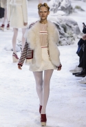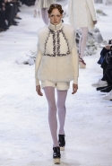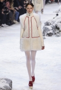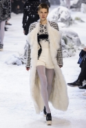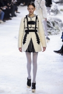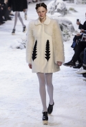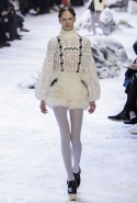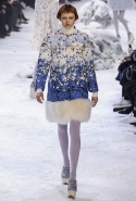 Коллекция, разумеется, продолжает заданную альпийскую высокогорную тему: Джамбаттиста Валли решил в том числе использовать и элементы национального костюма, добавив в линейку расшитые рубахи (точнее, нежнейшие блузы, но с традиционными народными вышивками) и толстые свитера с графичными вывязанными цветами. И те и другие выполнены с той же кутюрной тщательностью, что и все окружающие их предметы, от любимых Валли цветочных платьев с объемным мерцающим декором до теплых пальто с резными белыми узорами и щедрыми меховыми вставками. Выполнена вся коллекция исключительно в сине-белой гамме, так что девушки, даже те, кому достались наряды, усыпанные цветами, походили на юных снежных королевен — как в знаменитой сказке Андерсена, только с сердцами, еще не успевшими превратиться в ледышки. Кому-то из них для полноты эффекта достались также броши в виде снежинок. А на некоторых пальто, которым позавидовала бы даже Снегурочка, красовались искусно отрисованные горные пейзажи.