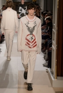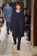 Возможно, внимание слишком успешно отвлекает обилие самых разных фактур. Джинсовые «тотал луки», камуфляж, объемные нашивки, красные маленькие вышивки, рисунки на расхлябанных свитерах крупной вязки — бросающихся в глаза и спорящих друг с другом вещей в коллекции много.
